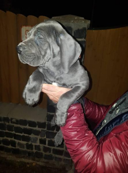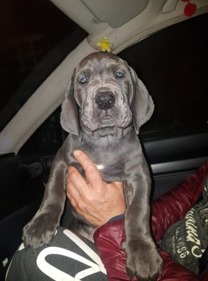 Niebieskie szczenięta niemieckiego doga z rodowodem von Ludwig blau-po wysokiej jakości wystawowych przodkach tytuły : C. I. B. - Międzynarodowy Interchampion piekna , Gch-Grand champion CZ, Ch-champion CZ, SK, A, CMKU-Czesko Morawsa kynologicka unia, Młodzieżowy mistrz JCh CZ, SK, H, hodowla EU, DdC-87cm, są zaczipowane , zaszczepione, odrobaczone, z Europasem i rodowodem, z paczką na poczatek, cena zmniejszona z 1200 do 999 euro ewentualnie do uzgodnienia.