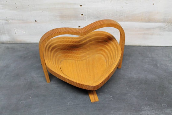 ten ładny kosz jest wycinany za pomocą piły spiralnej w spiralnym wzorze, co pozwala zapakować go do płaskiej pozycji w celu łatwego przechowywania. Wykonany jest z litego drewna.