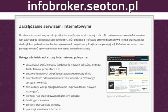 Nie jesteś zadowolony z obecnej obsługi Twojego sklepu internetowego? Oferuję swoją pomoc w zarządzaniu serwisem internetowym, przejmując wszystkie obowiązki i działania, które gwarantują sprawne funkcjonowanie serwisu. Ofertę kieruję do właścicieli portali internetowych, firm, bądź osób prywatnych, które nie mają czasu, bądź nie posiadają dostatecznej wiedzy, aby samodzielnie zajmować się swoją stroną WWW. Strona WWW, na której znajdują się aktualne informacje dobrze świadczy o firmie, a to z kolei przekłada się na decyzję o skorzystaniu z jej usług czy kupnie produktów.